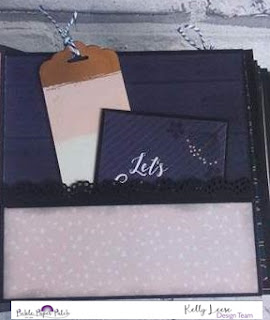 The pictures really do not do this album nor the papers used justice they are stunning papers, with some having some beautiful rose gold foiling on. On the pages with pockets I used two different Martha Stewart punches to add decoration to them also on every other pocket I added some beautiful flower pearl trim which is from my own crafty stash.